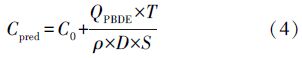式中,C0是土壤中原有的PBDEs濃度(ng · g-1),Cpred是污泥農(nóng)用之后土壤中PBDEs的濃度(ng · g-1),QPBDE 是通過(guò)污泥釋放的PBDEs的量(mg · d-1),T是該土壤污泥農(nóng)用的時(shí)間,ρ 是土壤的質(zhì)量密度(1500 kg · m-3),D 是污泥農(nóng)用的土壤深度(農(nóng)用土壤為0.2 m),S是污泥農(nóng)用的土壤面積(這里以100 hm2計(jì)算).如果C0 為0,即該土壤在污泥農(nóng)用之前從未受PBDEs污染,該土壤在污泥農(nóng)用之后PBDEs濃度年增加量為25.4 ng · g-1.
