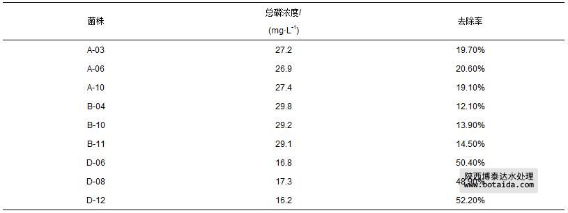 隨后,對EA、EB和ED共9株聚磷菌進行復(fù)篩實驗. 分別缺磷培養(yǎng)12 h后,轉(zhuǎn)接于富磷培養(yǎng)基中繼續(xù)培養(yǎng)24 h,測定除磷率,結(jié)果如表 1所示. 可知,ED-12對磷的去除能力最強,可達52.2%,因此,選擇菌株ED-12作進一步研究.