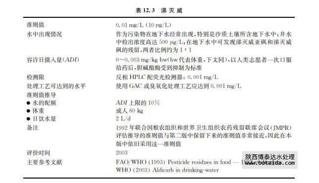 涕滅威 (CASNo,116 06 3)是一種用于控制土壤中線蟲類和許多影響農(nóng)作物的昆 蟲和螨蟲類的內(nèi)吸性農(nóng)藥(見表12.3)。涕滅威極易溶于水,在土壤中遷移性大。降解主要 通過生物降解和水解,但這樣的降解方式需持續(xù)幾周或幾個月。