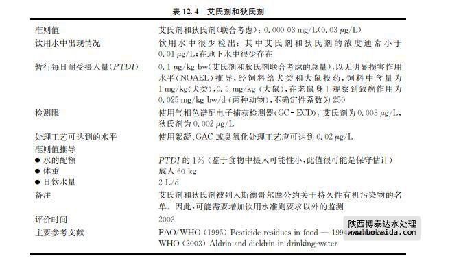 艾氏劑(CASNo.309 00 2)和狄氏劑(CASNo.60 57 1)是含氯農藥(見表12.4), 用于殺滅土壤中害蟲和保護木材。狄氏劑還可用于殺滅對公共衛(wèi)生有重要影響的昆蟲。自 20世紀70年代初,許多國家,特別在農業(yè)方面,嚴格限用或禁用這兩種農藥。兩種農藥的毒 理學和作用模式相似。在大多數環(huán)境條件下以及在體內,艾氏劑可快速轉變?yōu)榈沂蟿5?氏劑是一種持續(xù)性長的有機氯化合物,在土壤中遷移率很低,可散失至大氣并在生物體中蓄 積。飲食攝取艾氏劑和狄氏劑的可能性及濃度均較低。