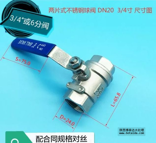 下圖為3/4′又稱6分閥(DN20),公稱通徑20,通常內(nèi)徑約在24mm左右。