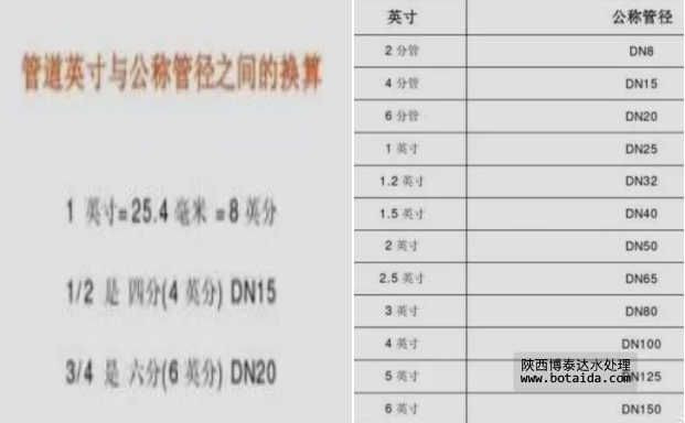 下圖為管道英寸與公稱尺寸之間對(duì)應(yīng)關(guān)系: