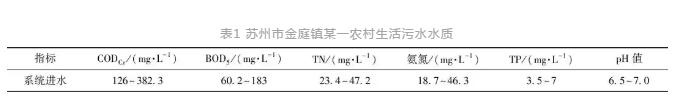 采用鐵碳-砂濾組合進(jìn)行強(qiáng)化除磷,相比化學(xué)法,操作簡(jiǎn)單,維護(hù)量小,從而為鐵碳-砂濾的深度除磷工藝在農(nóng)村生活污水中的應(yīng)用,一級(jí)脫氮除磷強(qiáng)化提供解決思路。為分析鐵碳-砂濾除磷工藝實(shí)際工程中的除磷效果,將該工藝應(yīng)用于蘇州市金庭鎮(zhèn)某一農(nóng)村生活污水處理項(xiàng)目。該項(xiàng)目污水處理系統(tǒng)采用固定床生物膜工藝,為防止鐵碳板結(jié)鈍化,裝置通過(guò)特殊結(jié)構(gòu)設(shè)計(jì),通過(guò)機(jī)械方法使鐵碳運(yùn)動(dòng),互相摩擦去除氧化膜,避免長(zhǎng)時(shí)間電解過(guò)程中陽(yáng)極鈍化及鐵碳板結(jié)問(wèn)題。項(xiàng)目區(qū)生活污水水質(zhì)情況如表1所示。