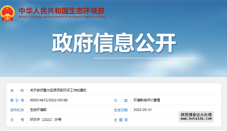 關(guān)于做好重大投資項目環(huán)評工作的通知
