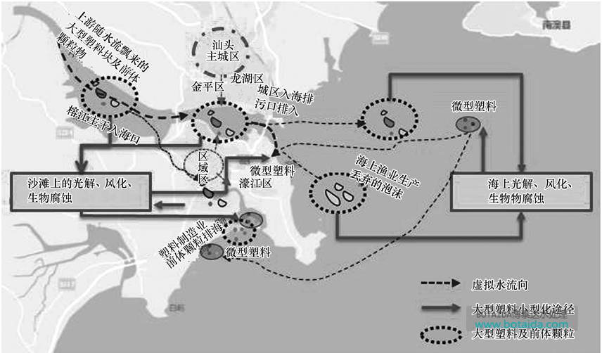 1)大型塑料和前體顆粒物的來(lái)源有:榕江上游隨水流飄入的部分,沿岸城區(qū)排放入海的部分,以及周圍塑料加工業(yè)排入環(huán)境中的前體顆粒.