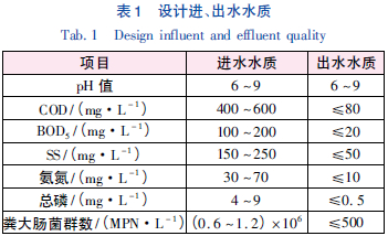 綜合廢水排放量為360 m3/d。設(shè)計出水水質(zhì)執(zhí)行《生物工程類制藥工業(yè)水污染物排放標(biāo)準(zhǔn)》(GB 21907-2008) 表2 規(guī)定的濃度限值。設(shè)計進(jìn)、出水水質(zhì)見表1。