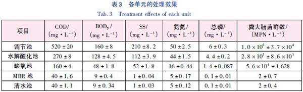 由表3 可見,系統(tǒng)對COD、BOD5、SS、氨氮、總磷、糞大腸菌群數(shù)的總?cè)コ史謩e為92.3%、94.4%、99.5%、90.0%、98.3% 和100%,出水水質(zhì)滿足《生物工程類制藥工業(yè)水污染物排放標(biāo)準(zhǔn)》(GB 21907—2008) 表2 規(guī)定濃度限值及《城市污水再生利用城市雜用水水質(zhì)》(GB/T 18920—2002)標(biāo)準(zhǔn)。