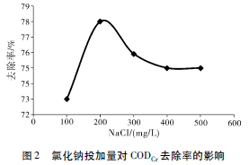2. 3 氯化鈉投加量對CODCr去除率的影響