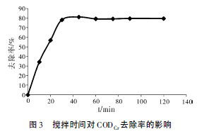 2. 4 攪拌反應(yīng)時間對CODCr去除率的影響