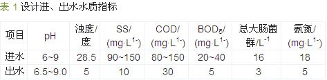 根據(jù)原水來源及出水水質(zhì)要求,確定進(jìn)、出水水質(zhì)指標(biāo)見表 1,設(shè)計(jì)處理水量為400 m3/d。