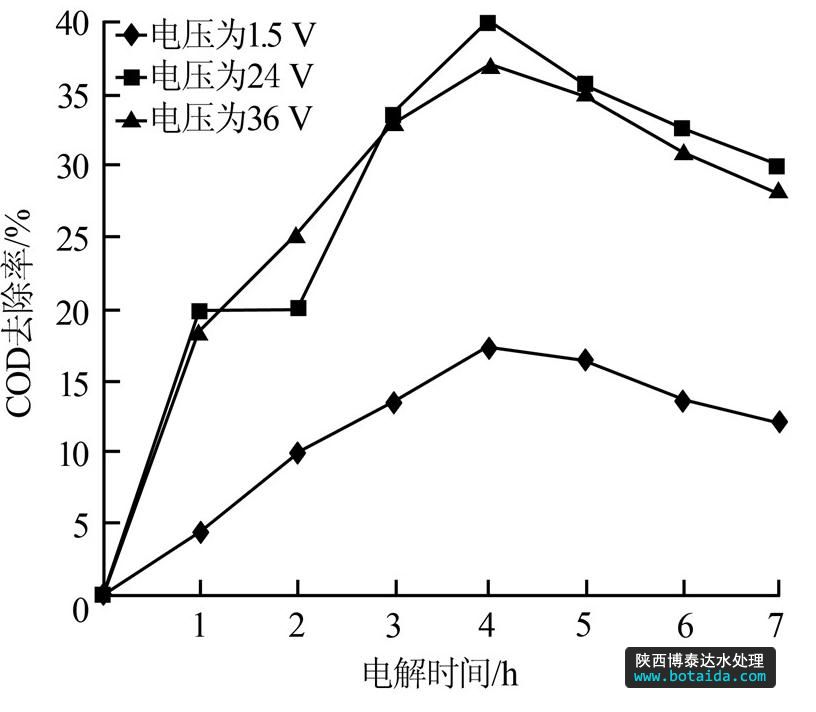 2.4 電解電壓對(duì)COD去除效果的影響