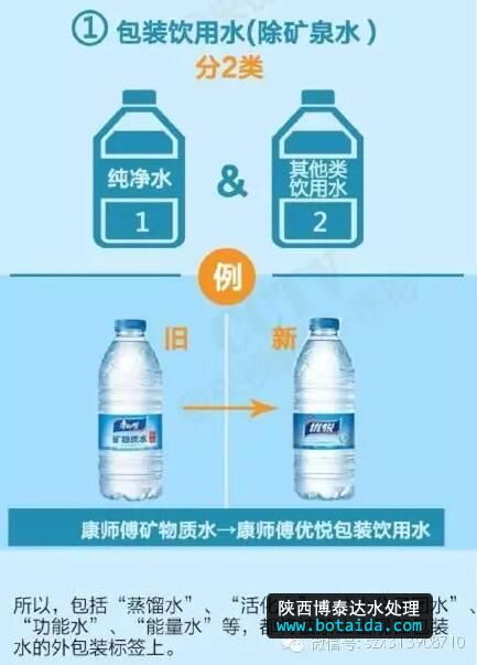 新的《包裝飲用水》標(biāo)準(zhǔn)出臺(tái)以后,除了真正的礦泉水外,所有的“概念水”將退出歷史舞臺(tái)。只有純凈水和其他類飲用水。