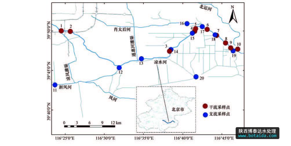 圖1 涼水河采樣點示意圖