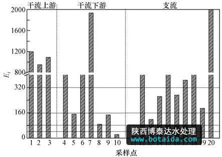 圖3 表層沉積物中汞的潛在生態(tài)風(fēng)險指數(shù)