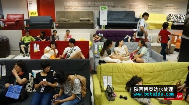2013年07月28日,北京,當天北京再次迎來一個35度以上的高溫天氣,為了躲避酷暑很多老百姓選擇了到有空調的大型商場去購物,餐飲和避暑。宜家家居客廳區(qū)沙發(fā)成了搶手貨。
