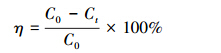 式中,η為MG的去除率;C0為反應(yīng)液中MG的初始濃度(40 mg · L-1);Ct為t min時反應(yīng)液中MG的濃度(mg · L-1),所有實驗平行3組進(jìn)行.
