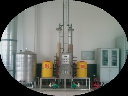 混床是指水依次通過裝有氫型陽離子交換樹脂的陽床和裝有氫氧型陰子交換樹脂的陰床的系統(tǒng)。氫型陽交換床用于除去水中的陽離子;氫氧型陰交換床用于除去水中的陰離子。通過復(fù)床可將水中的種礦物鹽基本除去。為了獲取較好的除鹽效果,陽床內(nèi)裝載強(qiáng)酸陽離子交換樹脂,陰床一般內(nèi)裝載強(qiáng)堿陰離子交換樹脂。混床也分為體內(nèi)同步再生式混床和體外再生式混床。