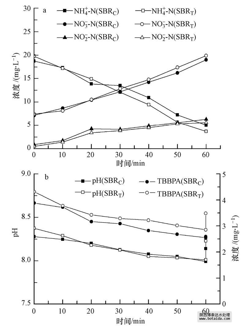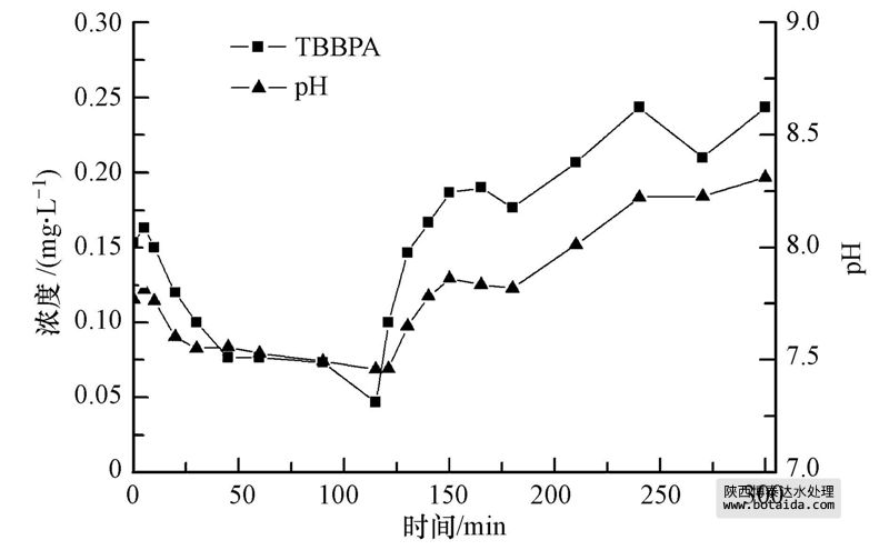 2)TBBPA在SBR典型反應(yīng)周期中濃度受pH影響較大.