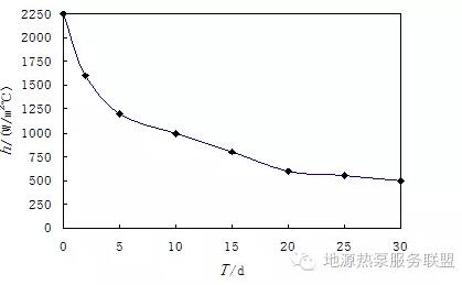 6 某地表水源熱泵工程換熱器熱熱量衰減幅度圖