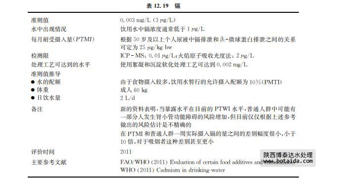 飲用水中化學(xué)物質(zhì):鎘