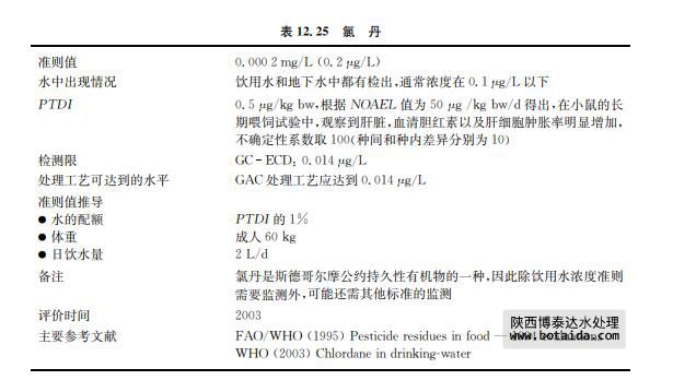 氯丹(CASNo.57 47 9)自1947年開始使用,是一種廣譜殺蟲劑(見表12.25)。目 前,許多國家已經(jīng)開始嚴(yán)格限制氯丹的使用,現(xiàn)僅通過液下噴射的方式用于殺除土壤中的白 蟻。經(jīng)液下噴射使用時(shí),氯丹會(huì)成為地下水污染的潛在污染源,但濃度較低。氯丹工業(yè)品是 混合物,主要由順式和反式氯丹組成。氯丹不易自然降解,在土壤中不易遷移也不易進(jìn)入地 下水(僅少量檢出)。氯胺易散失進(jìn)入大氣。雖然食物中所含氯胺的濃度水平一直在降低, 但氯胺具有持久性和較強(qiáng)的生物累積可能。