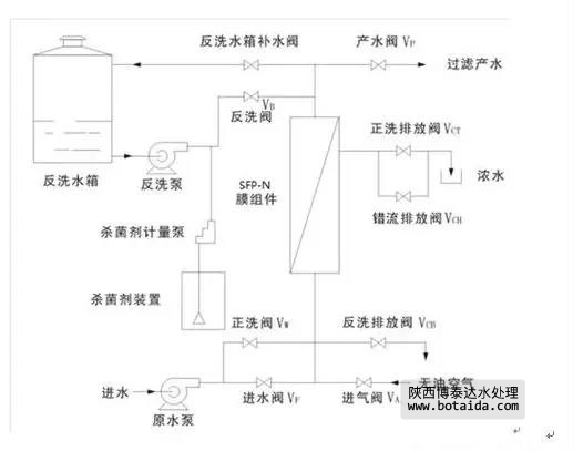 一般情況下,反洗和氣擦洗系統(tǒng)對(duì)于SFP-N超濾是必需的;通常,還配備一個(gè)殺菌劑加藥系統(tǒng)以控制微生物等繁殖對(duì)超濾膜的影響;而分散化學(xué)清洗系統(tǒng)則在水質(zhì)較差時(shí)配備。